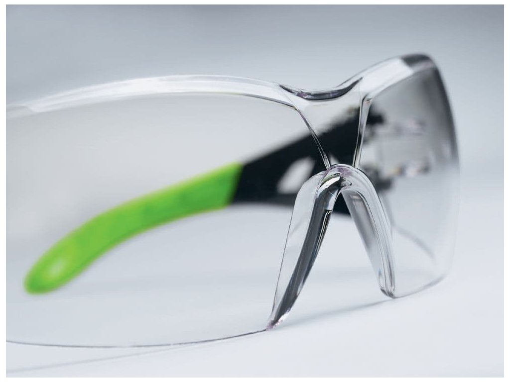 Štíhlá geometrie brýlí umožňuje pohodlné nošení společně s mušlovými chrániči sluchu a ochrannými přilbami.